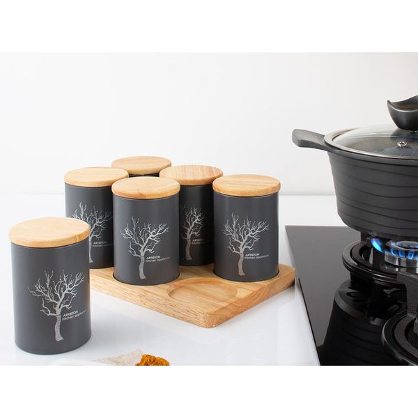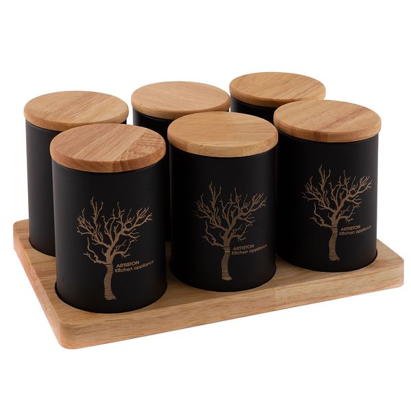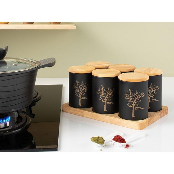 ست هفت پارچه جا ادویه ی آرتیستون در طرحی زیبا و مدررن ، باکیفیتی باور نکردنی از جنس فلز مقاوم با رنگ پودری الکترو استاتیک مناسب برای سازماندهی فضای آشپزخانه و دسترسی آسان و سریع تر به مواد مورد نیاز آشپزی میباشد. سرویس پاسماوری شامل 6 بانکه با درب بامبو مجهز به آهنربا برای جفت شدن با بانکه و همچنین دارای 6 قاشق ادویه می باشد. با خرید این سرویس، زیبایی آشپزخانه خود را دو چندان کنید.